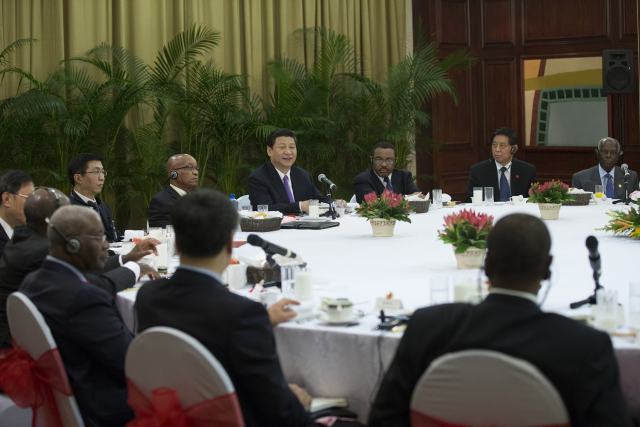 2013年3月28日,習近平在南非德班同非洲國家領(lǐng)導人就中非關(guān)系、非洲形勢深入交換意見,闡述政策主張。習近平指出: