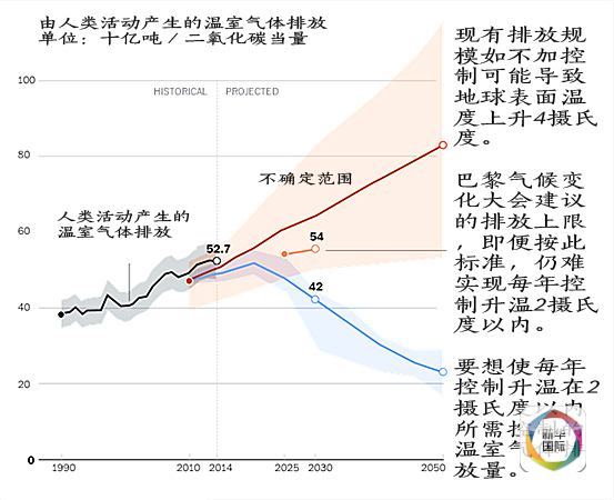 根據(jù)聯(lián)合國環(huán)境規(guī)劃署和世界資源研究所等機構(gòu)的數(shù)據(jù),全球由人類活動引發(fā)的溫室氣體排放量呈上升趨勢,2012年接近500億噸二氧化碳當量,2014年達到527億噸二氧化碳當量。