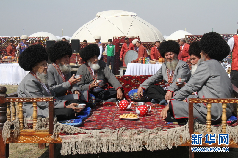 3月21日,在土庫(kù)曼斯坦首都阿什哈巴德,長(zhǎng)老們喝茶聊天。新華社記者盧敬利 攝