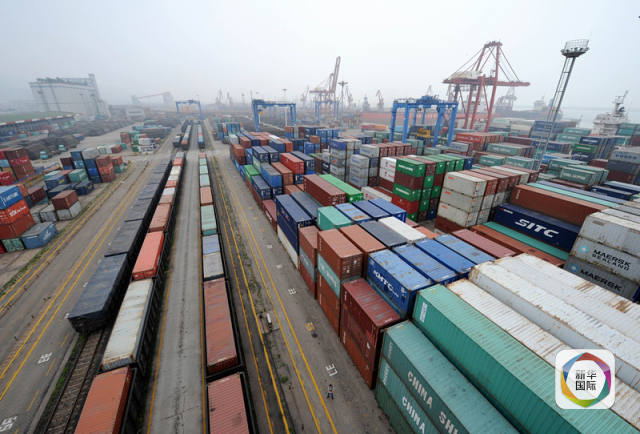 這張2014年6月27日拍攝的照片顯示,在連云港港區(qū)內(nèi)的新亞歐大陸橋鐵路運(yùn)輸專線站場(chǎng),準(zhǔn)備運(yùn)往哈薩克斯坦的過境集裝箱在裝車。(新華社記者孫參攝)
