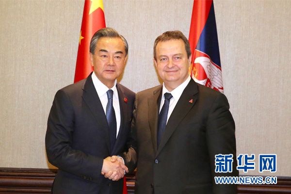 6月17日,中國(guó)外交部長(zhǎng)王毅(左)在貝爾格萊德應(yīng)約會(huì)見塞爾維亞第一副總理兼外長(zhǎng)達(dá)契奇。 新華社記者丁林?jǐn)z