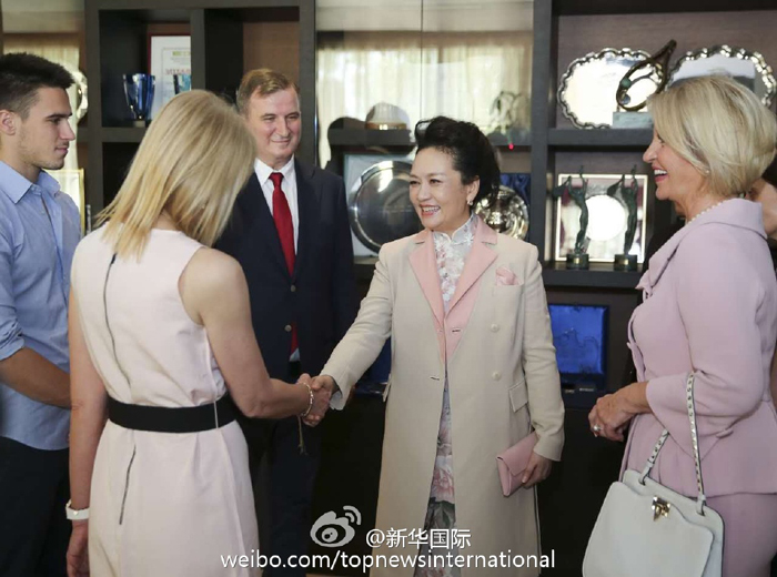 ??? 新華網北京6月18日電 18日中午,彭麗媛在塞爾維亞總統(tǒng)夫人德拉吉察陪同下,參觀了德約科維奇網球培訓中心,并同塞爾維亞著名網球運動員德約科維奇的母親、叔父和弟弟親切會面。彭麗媛對德約科維奇家人說:“小德在中國擁有很多粉絲。”彭麗媛稱贊德約科維奇不僅球技精湛而且充滿愛國情懷。彭麗媛還向網球培訓中心贈送德約科維奇自傳《一發(fā)制勝》的中文版。?(新華社新華國際微博報道)