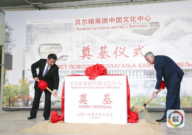 6月17日,國家主席習(xí)近平同塞爾維亞總統(tǒng)尼科利奇在貝爾格萊德共同出席中國文化中心奠基儀式。新華社記者蘭紅光攝