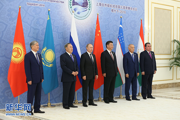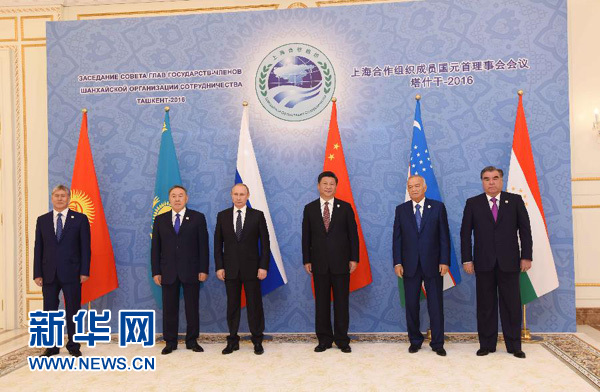 新華社塔什干6月24日電(記者陳贄 霍小光 駱珺)24日,上海合作組織成員國(guó)元首理事會(huì)第十六次會(huì)議在烏茲別克斯坦塔什干舉行。國(guó)家主席習(xí)近平同哈薩克斯坦總統(tǒng)納扎爾巴耶夫、吉爾吉斯斯坦總統(tǒng)阿坦巴耶夫、俄羅斯總統(tǒng)普京、塔吉克斯坦總統(tǒng)拉赫蒙、烏茲別克斯坦總統(tǒng)卡里莫夫出席會(huì)議。習(xí)近平在會(huì)上發(fā)表重要講話(huà),強(qiáng)調(diào)要堅(jiān)定遵循上海合作組織根本宗旨和原則,牢牢把握發(fā)展大方向,動(dòng)態(tài)調(diào)整各領(lǐng)域合作方略,確保本組織生機(jī)活力。