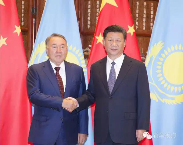 同納扎爾巴耶夫總統(tǒng)會(huì)談時(shí),習(xí)近平主席指出,中哈雙方要全面推進(jìn)“一帶一路”建設(shè)。兩國(guó)元首還共同見證了有關(guān)“絲綢之路經(jīng)濟(jì)帶”建設(shè)與“光明之路”新經(jīng)濟(jì)政策對(duì)接合作等文件的簽署。