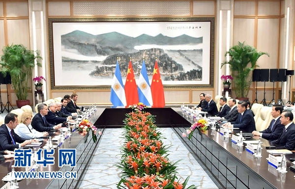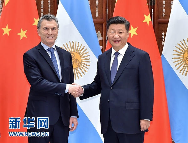 9月3日,國家主席習近平在杭州會見前來出席二十國集團領(lǐng)導(dǎo)人杭州峰會的阿根廷總統(tǒng)馬克里。 新華社記者 李濤 攝