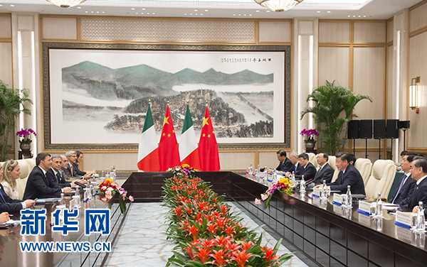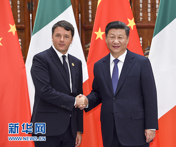 習(xí)近平歡迎倫齊來華出席二十國集團(tuán)領(lǐng)導(dǎo)人杭州峰會。習(xí)近平指出,近年來,中意關(guān)系取得長足進(jìn)步,雙方秉承相互尊重、互利共贏精神,深化政治互信,擴(kuò)大務(wù)實合作,使兩國人民獲得實實在在的利益。中方愿同意方攜手努力,不斷推進(jìn)兩國全面戰(zhàn)略伙伴關(guān)系向前發(fā)展。我們要堅持兩國戰(zhàn)略互信大方向,尊重彼此核心利益和重大關(guān)切,密切兩國政府、議會、政黨交流合作。要堅持互利共贏原則,優(yōu)勢互補,實現(xiàn)共同發(fā)展。中方歡迎意方積極參與“一帶一路”建設(shè)。我們要以古老文明為依托,密切人文交流,深化傳統(tǒng)友誼。要加強在國際和地區(qū)事務(wù)中的協(xié)調(diào)和配合,努力構(gòu)建以合作共贏為核心的新型國際關(guān)系。要將中歐和平、增長、改革、文明四大伙伴關(guān)系落到實處,共同維護(hù)中歐關(guān)系良好發(fā)展勢頭。