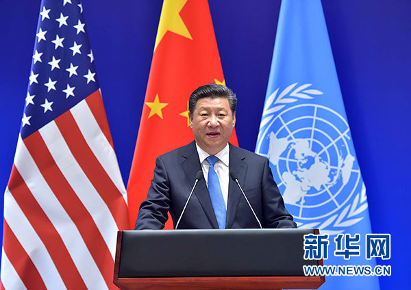習近平強調,中國是最大的發(fā)展中國家,美國是最大的發(fā)達國家,兩國在氣候變化領域開展了卓有成效的對話和合作。兩國共同交存參加《巴黎協(xié)定》法律文書,展示了共同應對全球性問題的雄心和決心。國際社會應該以落實《巴黎協(xié)定》為契機,加倍努力,不斷加強和完善全球治理體系,創(chuàng)新應對氣候變化路徑,推動《巴黎協(xié)定》早日生效和全面落實。我們要堅持共同但有區(qū)別的責任原則、公平原則、各自能力原則,按照巴黎大會授權,穩(wěn)步推進后續(xù)談判,有效應對氣候變化挑戰(zhàn)。發(fā)達國家要履行承諾,提供資金技術支持,增強發(fā)展中國家應對氣候變化能力。