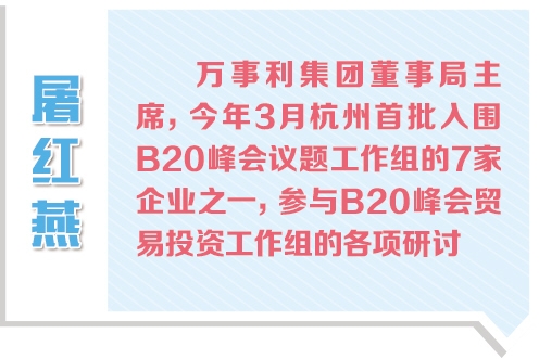 “G20杭州峰會(huì)的舉辦,對(duì)杭州來說是很好的機(jī)會(huì),企業(yè)將受益匪淺,更是我們公司全球化的新起點(diǎn)?!眳⒓覤20峰會(huì)貿(mào)易投資組會(huì)議的??低暥麻L(zhǎng)陳宗年說。