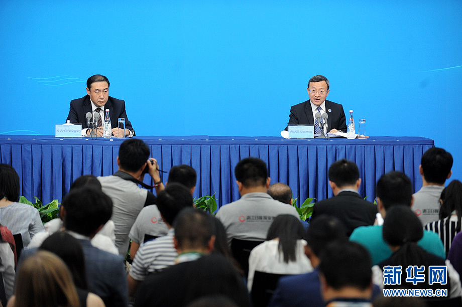 9月3日,中國代表團(tuán)在浙江杭州舉行新聞發(fā)布會(huì),商務(wù)部副部長王受文就G20杭州峰會(huì)經(jīng)貿(mào)成果展望向記者介紹情況并回答提問。新華網(wǎng)記者?陳競超 攝