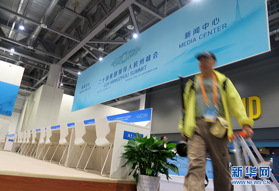 9月4日上午,金磚國家領(lǐng)導(dǎo)人非正式會晤在浙江杭州舉行。當日,G20峰會新聞中心一派繁忙景象。新華網(wǎng)記者 陳競超 攝