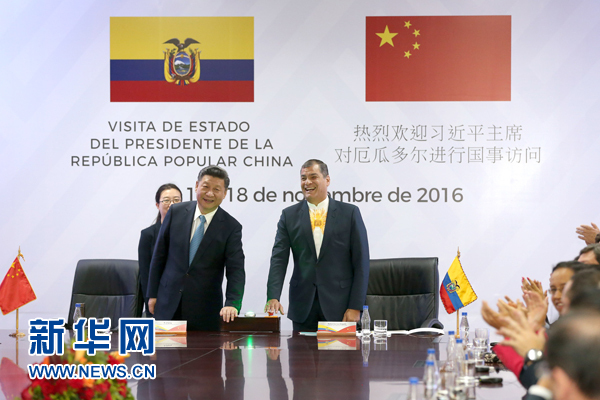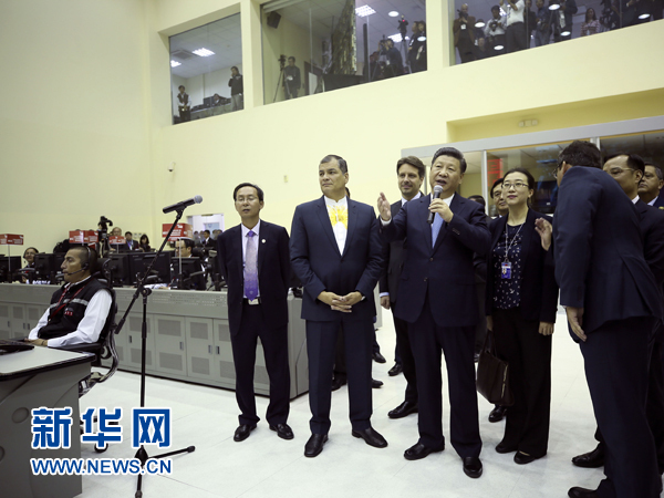 新華社基多11月18日電(記者王聰 霍小光)國(guó)家主席習(xí)近平18日在基多同厄瓜多爾總統(tǒng)科雷亞共同出席中方援建的厄瓜多爾公共安全應(yīng)急指揮中心聯(lián)合實(shí)驗(yàn)室揭牌儀式,喬內(nèi)醫(yī)院奠基、科卡科多-辛克雷水電站竣工發(fā)電視頻連線活動(dòng)。