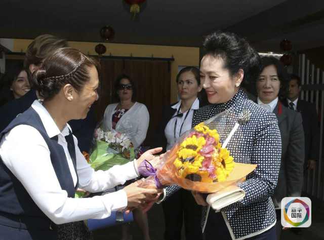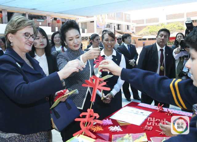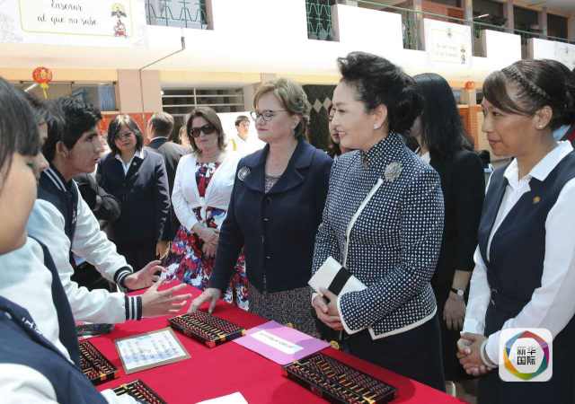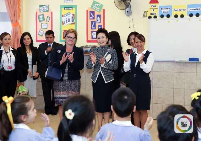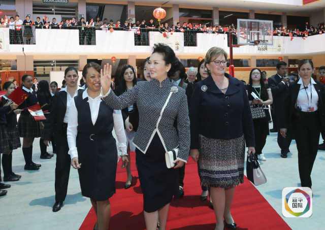 ??? 彭麗媛抵達(dá)時(shí),秘魯總統(tǒng)夫人蘭格和學(xué)校校長(zhǎng)在下車(chē)處迎接,校長(zhǎng)為彭麗媛獻(xiàn)上鮮花。若望二十三世秘中學(xué)校創(chuàng)辦于1962年,是從幼兒園到中學(xué)教育的全日制學(xué)校,也是秘魯乃至南美洲最具影響的華文學(xué)校之一。