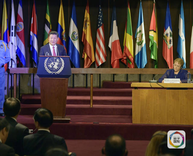 國家主席習近平在圣地亞哥聯(lián)合國拉丁美洲和加勒比經(jīng)濟委員會總部出席中拉媒體領袖峰會開幕式。智利總統(tǒng)巴切萊特陪同出席。在熱烈的掌聲中,習近平發(fā)表題為《開創(chuàng)中拉媒體合作新局面》的致辭。(新華社記者王曄攝)