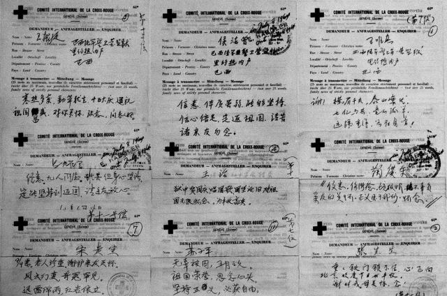 9名同志在紅十字會的協(xié)助下,從監(jiān)獄中寄書祖國。(新華社發(fā))
