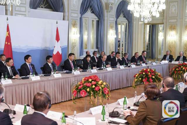 1月16日,國家主席習(xí)近平在伯爾尼同瑞士聯(lián)邦主席洛伊特哈德共同會(huì)見瑞士經(jīng)濟(jì)界代表。(新華社記者 李學(xué)仁 攝)