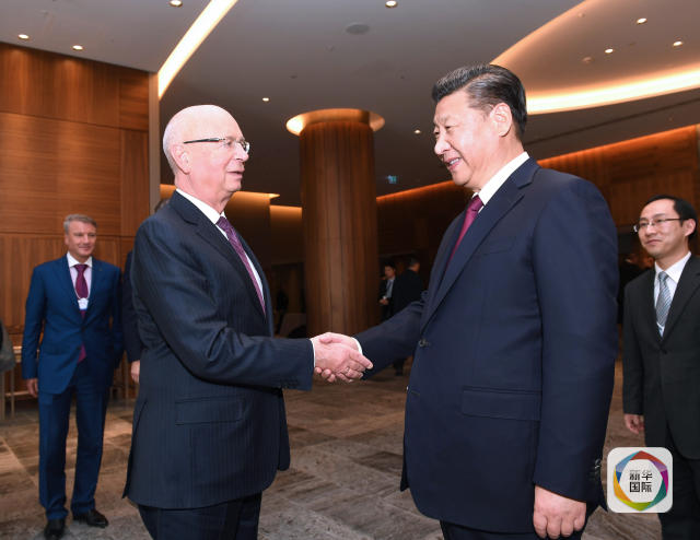 1月17日,國家主席習(xí)近平在瑞士達(dá)沃斯會見世界經(jīng)濟(jì)論壇主席施瓦布。(新華社記者 饒愛民 攝)