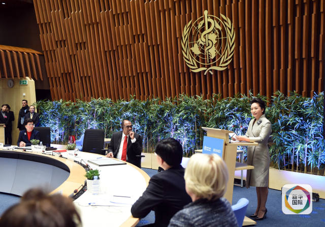 1月18日,國(guó)家主席習(xí)近平夫人、世界衛(wèi)生組織結(jié)核病和艾滋病防治親善大使彭麗媛應(yīng)世界衛(wèi)生組織總干事陳馮富珍和聯(lián)合國(guó)艾滋病規(guī)劃署執(zhí)行主任西迪貝邀請(qǐng),在瑞士日內(nèi)瓦出席為她舉行的親善大使任期續(xù)延暨頒獎(jiǎng)儀式。這是彭麗媛在儀式上致辭。(新華社記者謝環(huán)馳攝)