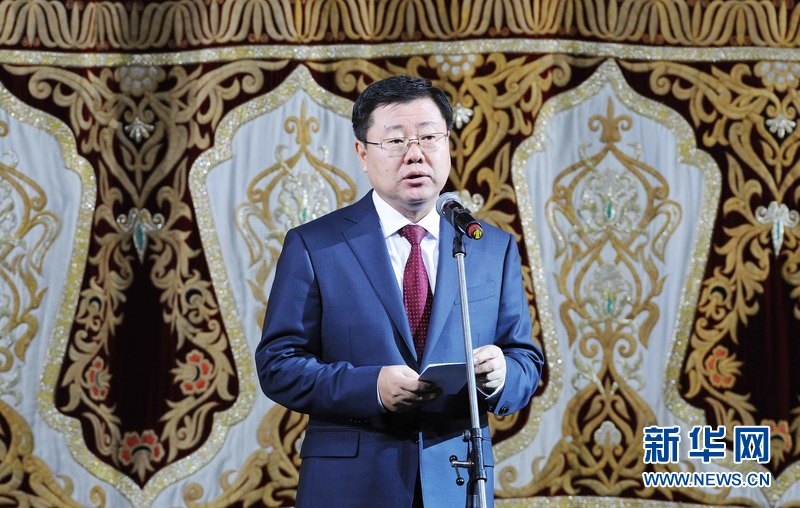? 1月18日晚,烏茲別克斯坦首都塔什干人民友誼宮,中國駐烏茲別克斯坦大使孫立杰在講話。新華網(wǎng)記者 沙達(dá)提 攝