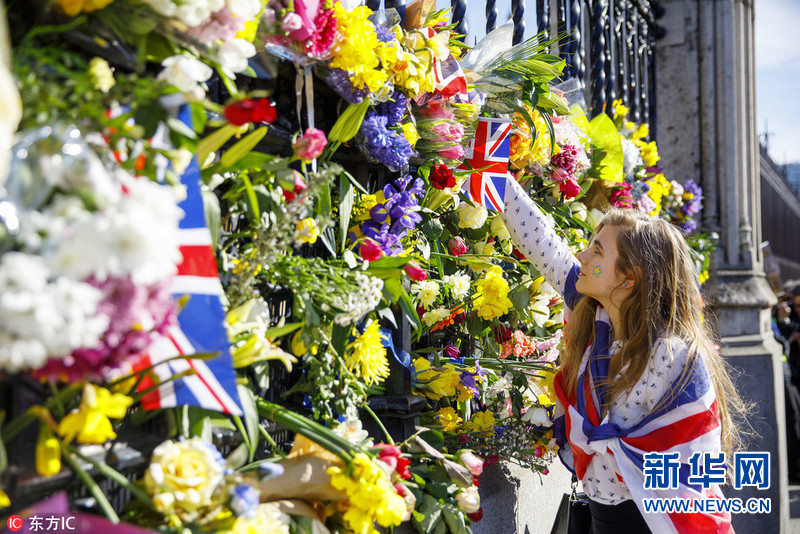 英國(guó)民眾在議會(huì)外擺放鮮花 哀悼恐襲受害者(組圖)
