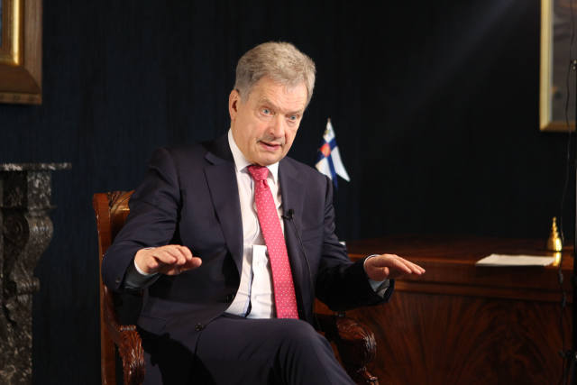 4月3日,在芬蘭赫爾辛基,芬蘭總統(tǒng)尼尼斯托接受新華社記者的專訪。(新華社記者張璇攝)