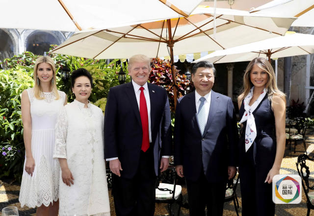 當(dāng)?shù)貢r(shí)間4月7日,國家主席習(xí)近平在美國佛羅里達(dá)州海湖莊園同美國總統(tǒng)特朗普舉行中美元首第二場正式會(huì)晤。這是習(xí)近平和夫人彭麗媛同特朗普和夫人梅拉尼婭、女兒伊萬卡在莊園內(nèi)合影。(新華社記者蘭紅光攝)