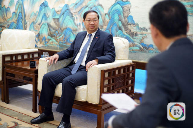 6月29日,在德國柏林,中國駐德國大使史明德(左)接受新華社記者專訪。新華社記者王勍攝