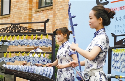 ??? 7月5日,“感知中國·匠心冶陶”景德鎮(zhèn)陶瓷文化展在柏林開幕,中方向德國觀眾奉獻(xiàn)了一場(chǎng)精彩的瓷樂表演。記者 管克江攝