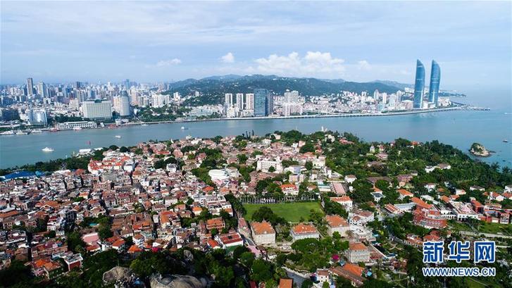 這是鳥瞰廈門鼓浪嶼和廈門島(8月24日攝)。 新華社記者 王建華 攝
