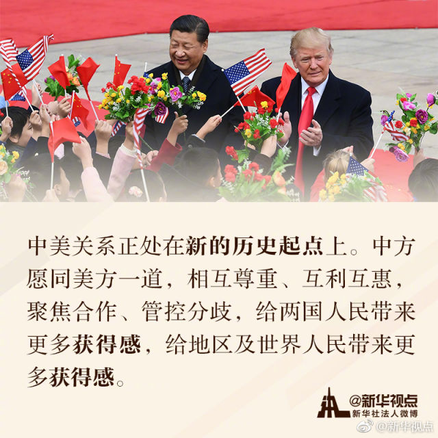 【關(guān)于新時(shí)代的中美關(guān)系,習(xí)近平這樣說】美國總統(tǒng)特朗普訪華期間,對于新時(shí)代的中美關(guān)系,習(xí)近平主席作出了哪些重要論述?為未來中美關(guān)系發(fā)展定下了什么基調(diào)?一起來學(xué)習(xí)這些金句吧!