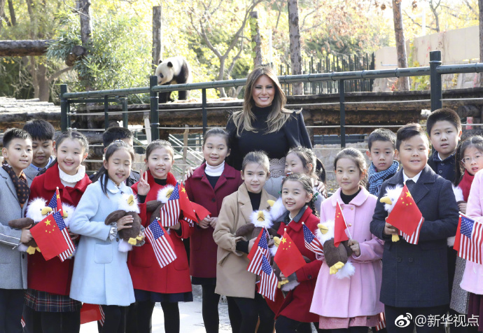11月10日上午,美國總統(tǒng)特朗普的夫人梅拉尼婭參觀北京動物園熊貓館。來看現(xiàn)場照片?。ㄓ浾啐嬇d雷、王慧慧)(新華社“新華視點”微博報道)