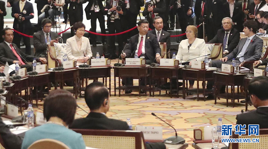 11月10日,國家主席習(xí)近平出席在越南峴港舉行的亞太經(jīng)合組織領(lǐng)導(dǎo)人與東盟領(lǐng)導(dǎo)人對話會。 新華社記者 丁林 攝