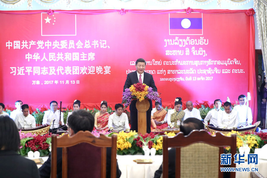 11月13日,中共中央總書(shū)記、國(guó)家主席習(xí)近平在萬(wàn)象出席老撾人民革命黨中央委員會(huì)總書(shū)記、國(guó)家主席本揚(yáng)舉行的歡迎宴會(huì)。這是習(xí)近平在宴會(huì)上致辭。新華社記者 馬占成 攝