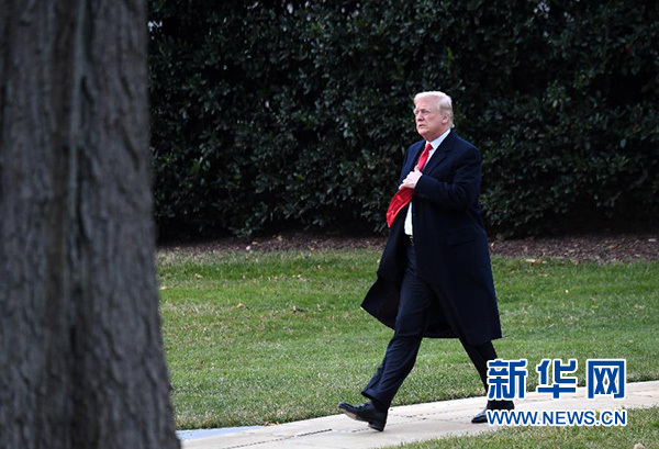 12月22日,在美國(guó)華盛頓白宮,美國(guó)總統(tǒng)特朗普簽署減稅法案后準(zhǔn)備乘直升機(jī)離開。 新華社記者殷博古攝