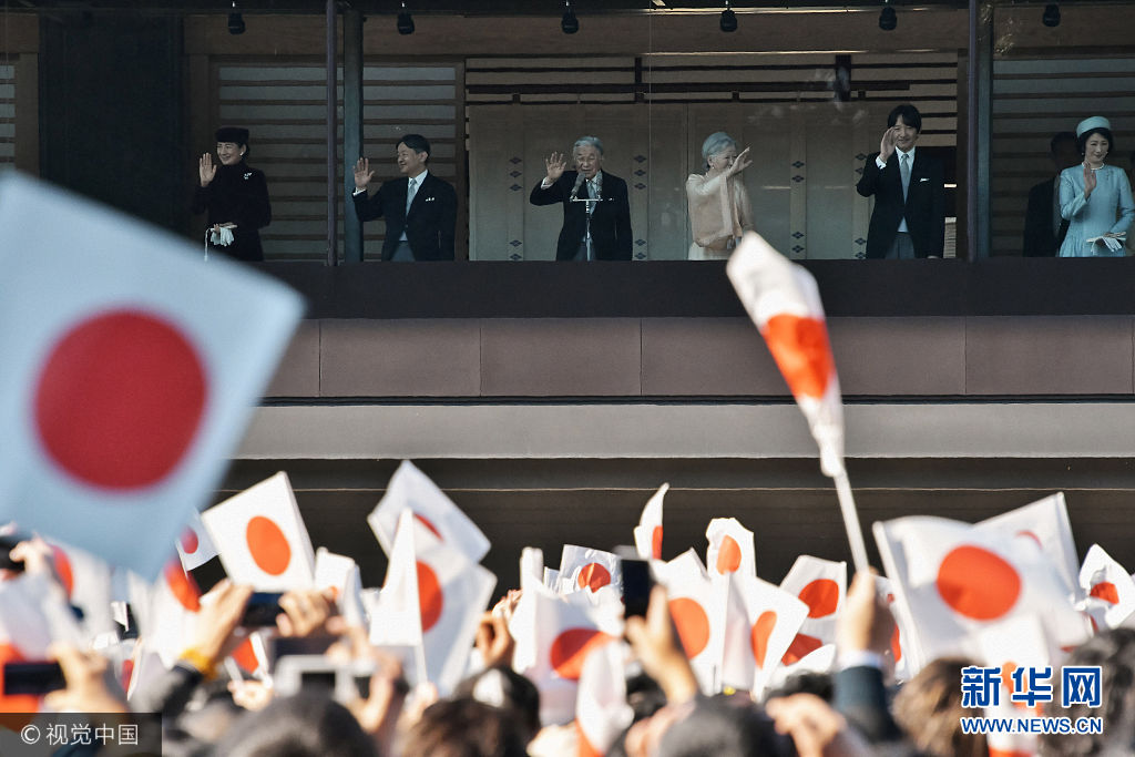 當(dāng)?shù)貢r(shí)間2017年12月23日,日本東京,日本明仁天皇慶祝84歲生日,在皇宮的陽(yáng)臺(tái)上向祝福者揮手致意。(圖片來源:視覺中國(guó))