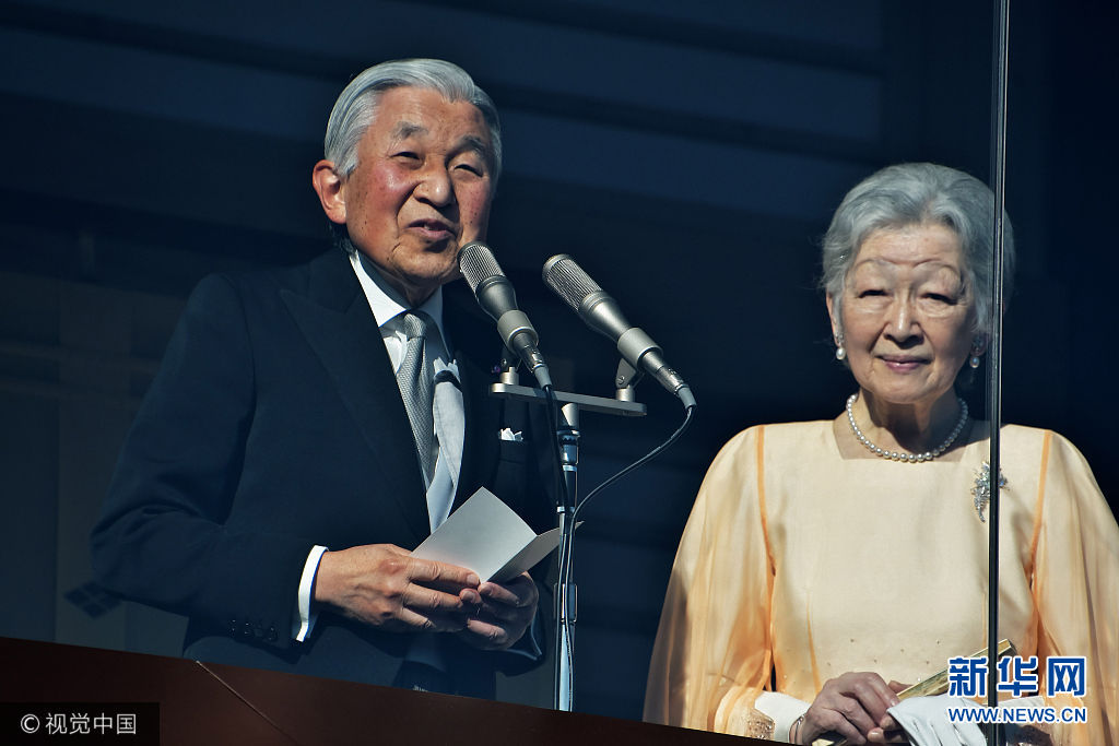 當(dāng)?shù)貢r(shí)間2017年12月23日,日本東京,日本明仁天皇慶祝84歲生日,在皇宮的陽臺上向祝福者揮手致意。(圖片來源:視覺中國)