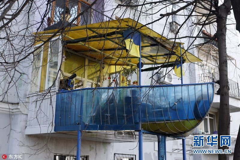 【帥!軍艦陽臺】2017年3月30日,烏克蘭基輔,72歲的老人Olexander Shkolnik曾是一名海軍少校。退役后,老人將自家陽臺打造成了軍艦?zāi)?,以紀念自己的海軍生涯。