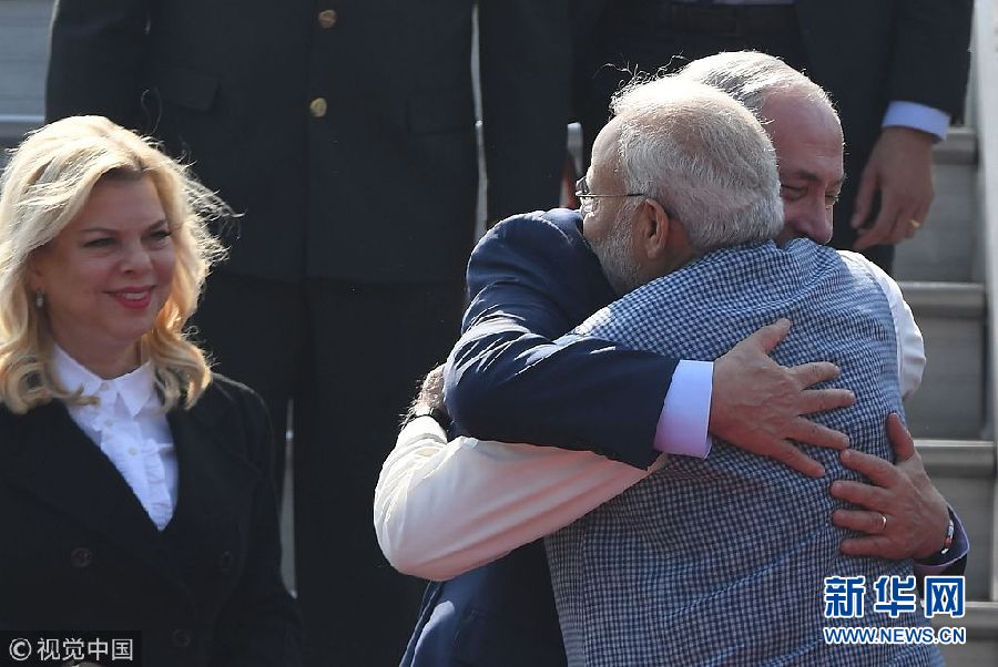 當(dāng)?shù)貢r(shí)間1月14日,印度新德里,以色列總理內(nèi)塔尼亞胡抵達(dá)印度展開訪問(wèn)。(圖片來(lái)源:視覺(jué)中國(guó))