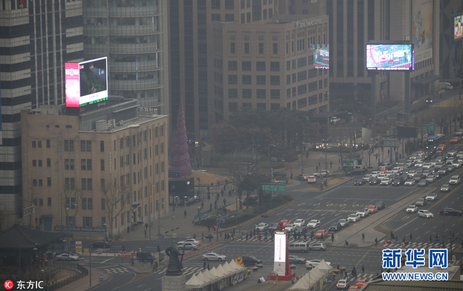 韓國多地出現(xiàn)重霧霾天氣 灰蒙一片能見度極低