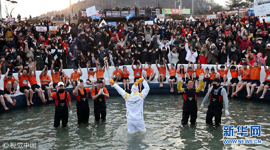 當(dāng)?shù)貢r(shí)間1月21日,韓國(guó)江原道華川郡,奧運(yùn)圣火傳遞儀式在華川山鱒魚(yú)慶典場(chǎng)地舉行。(圖片來(lái)源:視覺(jué)中國(guó))