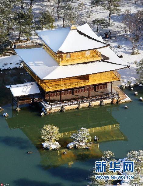 1月25日,大雪過(guò)后,日本京都一片銀裝素裹,金閣寺、清水寺披上“雪衣”。(圖片來(lái)源:東方IC)