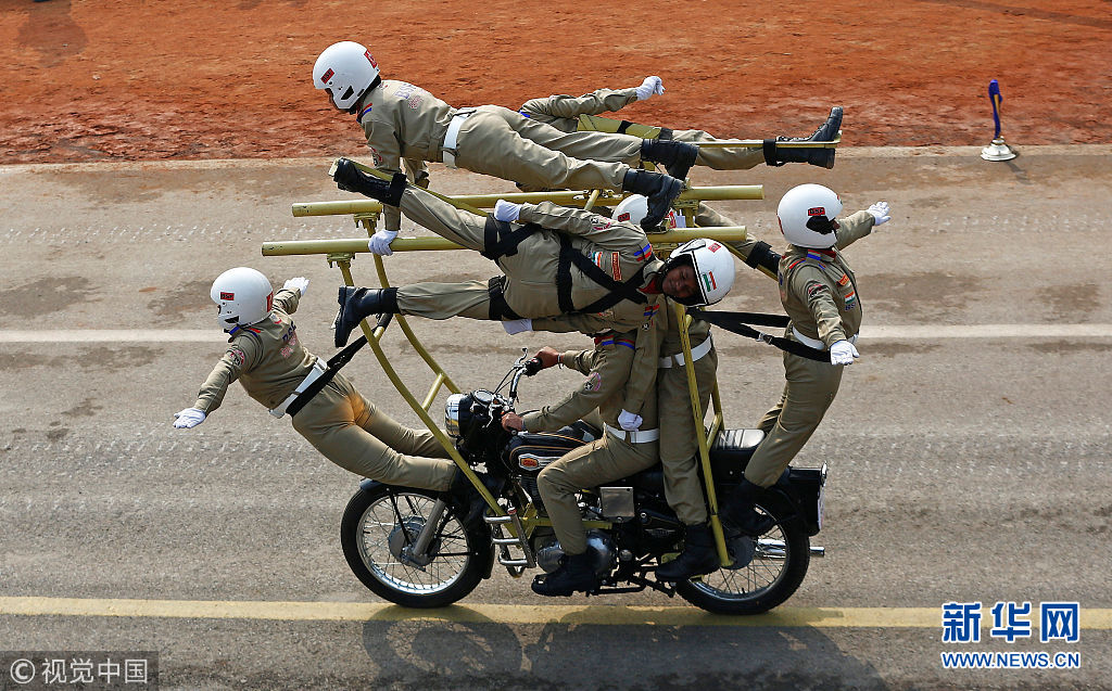 印度舉行閱兵游行慶祝第69個(gè)共和國日 摩托車隊(duì)再展“神技”