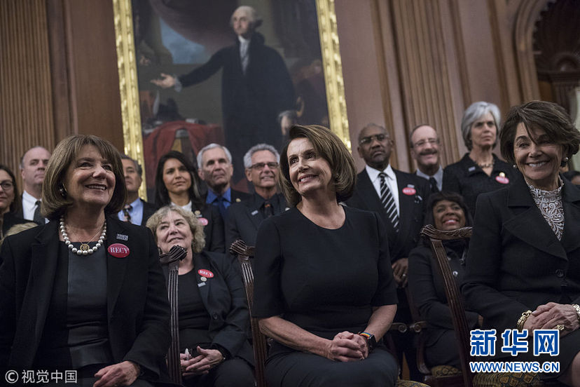當(dāng)?shù)貢r(shí)間1月30日,美國華盛頓,民主黨國會(huì)議員和性侵幸存者一同穿黑衣現(xiàn)身國會(huì)大廈,聲援勇敢反對(duì)性騷擾和歧視的人們。眾議院民主黨人計(jì)劃穿黑衣出席特朗普的國情咨文演講,支持MeToo和TimesUp組織。 (圖片來源:視覺中國)