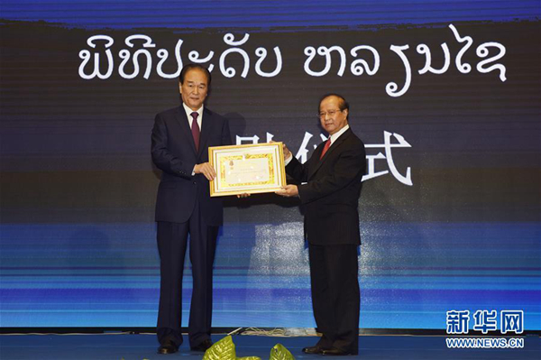 2月2日,在老撾首都萬(wàn)象舉行的首屆“一帶一路”老-中合作論壇開幕式上,老撾政府向新華社及新華社社長(zhǎng)蔡名照分別授予自由勛章,以表彰新華社長(zhǎng)期以來(lái)為加強(qiáng)老中合作關(guān)系以及為老撾國(guó)家通訊社發(fā)展所作的積極貢獻(xiàn)。首屆“一帶一路”老-中合作論壇2日在老撾首都萬(wàn)象開幕。論壇圍繞中共中央總書記、國(guó)家主席習(xí)近平去年11月對(duì)老撾進(jìn)行國(guó)事訪問(wèn)達(dá)成的各項(xiàng)成果,探討“一帶一路”倡議與老撾國(guó)家發(fā)展戰(zhàn)略對(duì)接,共商中老發(fā)展合作大計(jì)。新華社記者 秦晴 攝