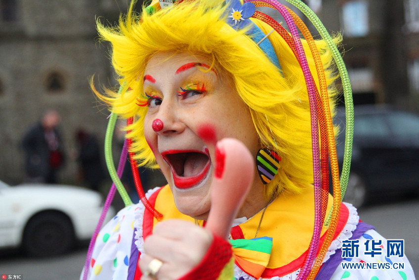 英國倫敦小丑歡聚一堂 紀(jì)念“小丑之父”