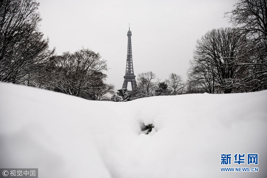 法國巴黎降下罕見大雪 埃菲爾鐵塔臨時(shí)關(guān)閉