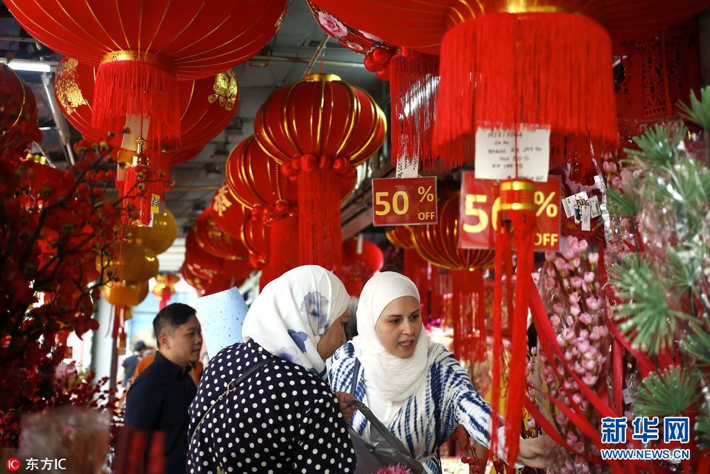 當?shù)貢r間2018年2月11日,馬來西亞吉隆坡,中國農(nóng)歷新年將至,當?shù)啬曦浭袌黾t火。(圖片來源:東方IC)