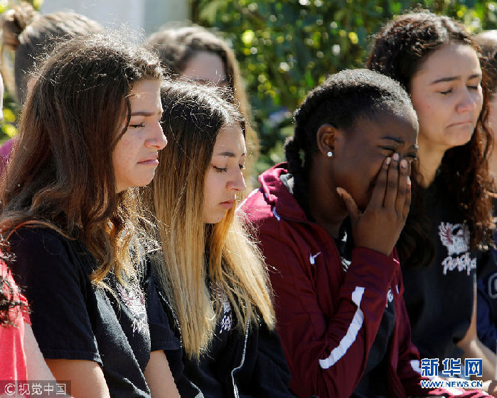 當(dāng)?shù)貢r間2018年2月15日,美國佛羅里達州波姆龐帕諾灘,民眾悼念槍擊案遇難者。當(dāng)?shù)貢r間14日下午2點25分左右,美國佛羅里達州南部帕克蘭一所高中發(fā)生槍擊案,目前已致至少17人死亡,多人受傷。(圖片來源:視覺中國)
