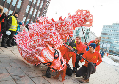 2月15日,第十二屆“歡樂春節(jié)·赫爾辛基廟會”在芬蘭首都赫爾辛基舉行,吸引大量民眾參加。圖為當?shù)厝嗽谖椠?。新華社發(fā)