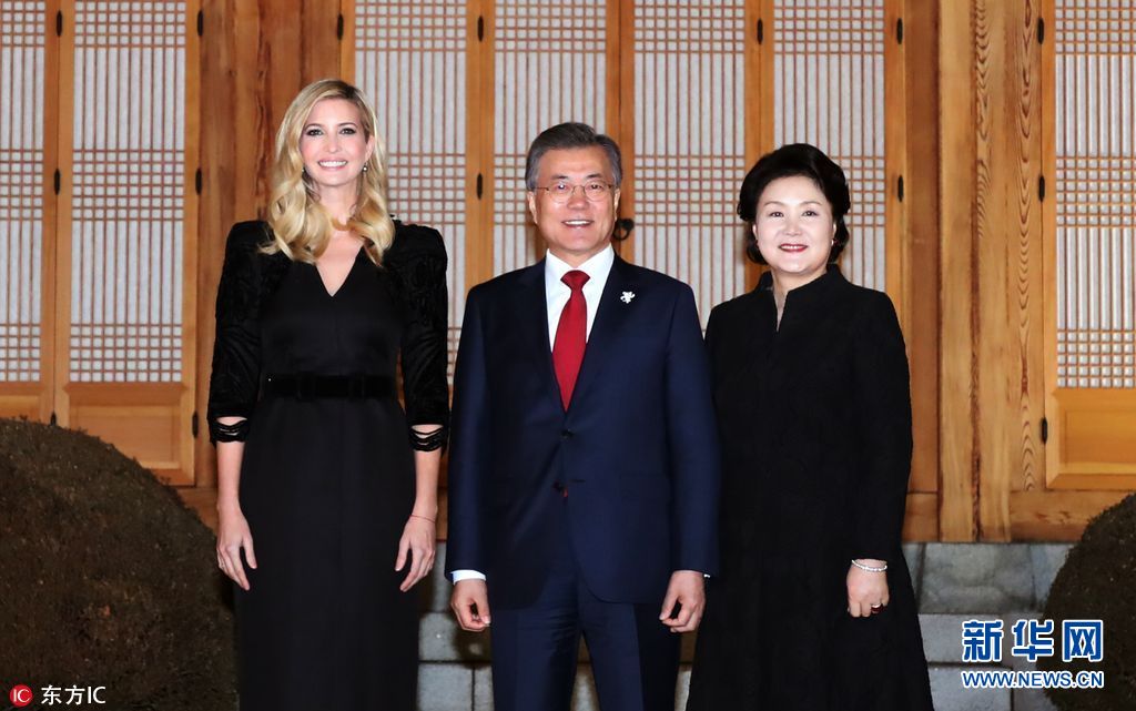 當?shù)貢r間2018年2月23日,韓國首爾,韓國總統(tǒng)文在寅夫婦在青瓦臺設晚宴,歡迎伊萬卡來訪。美國總統(tǒng)特朗普之女、總統(tǒng)助理伊萬卡率領的美國代表團23日抵韓進行訪問,并將出席平昌冬奧會閉幕式。(圖片來源:東方IC)